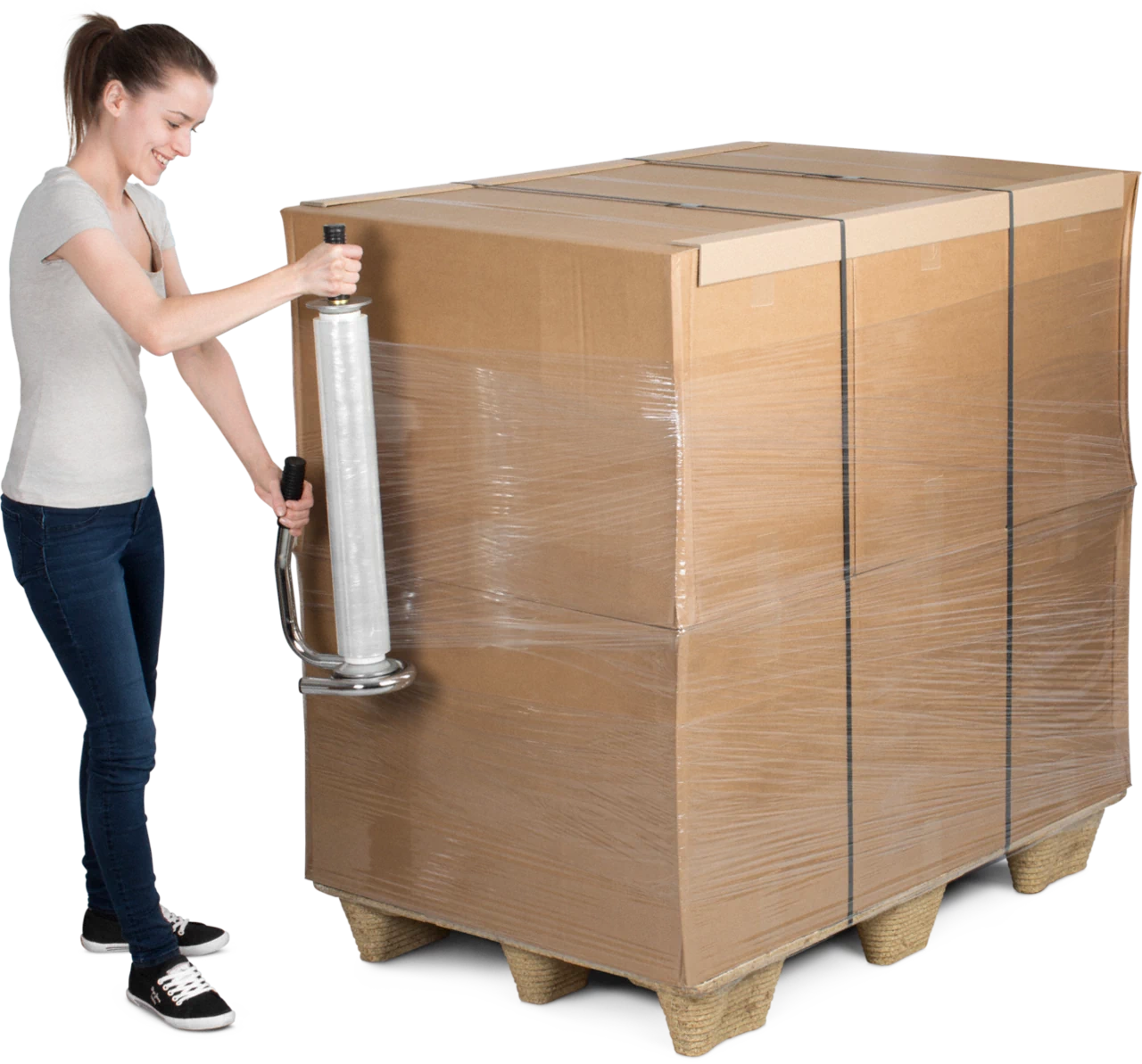 Wenn Ihre Ware doch noch herumrutschen sollte, bieten sich ressourcenschonende Füll-Alternativen wie Luftpolsterkissen in Rollen aus Recyclingmaterial an. Eine sinnvolle Massnahme sind ausserdem Papier-Luftkissen. Mit einem entsprechenden Gerät fertigen Sie diese selbst an und zwar nur dann, wenn Sie Füllmaterial wirklich benötigen. Damit sparen Sie bestmöglich Material ein, da Sie zu 99% Luft versenden. - Nicht nur bei Postversand, sondern auch beim Transport mit Spedition gibt es Möglichkeiten Ressourcen einzusparen, wie z. B. bei der Palettensicherung. Dies erreichen Sie mit Stretchfolien, wie der MECASTRETCH® ECO Handrolle. Dieser neuartige Artikel weist eine Folienstärke von nur 9 my auf. Dank der hochwertigen Verarbeitung der Folie können Sie jedoch die gleiche Paletten-Stabilität wie bei einer 20-my-Standard-Folie erreichen.