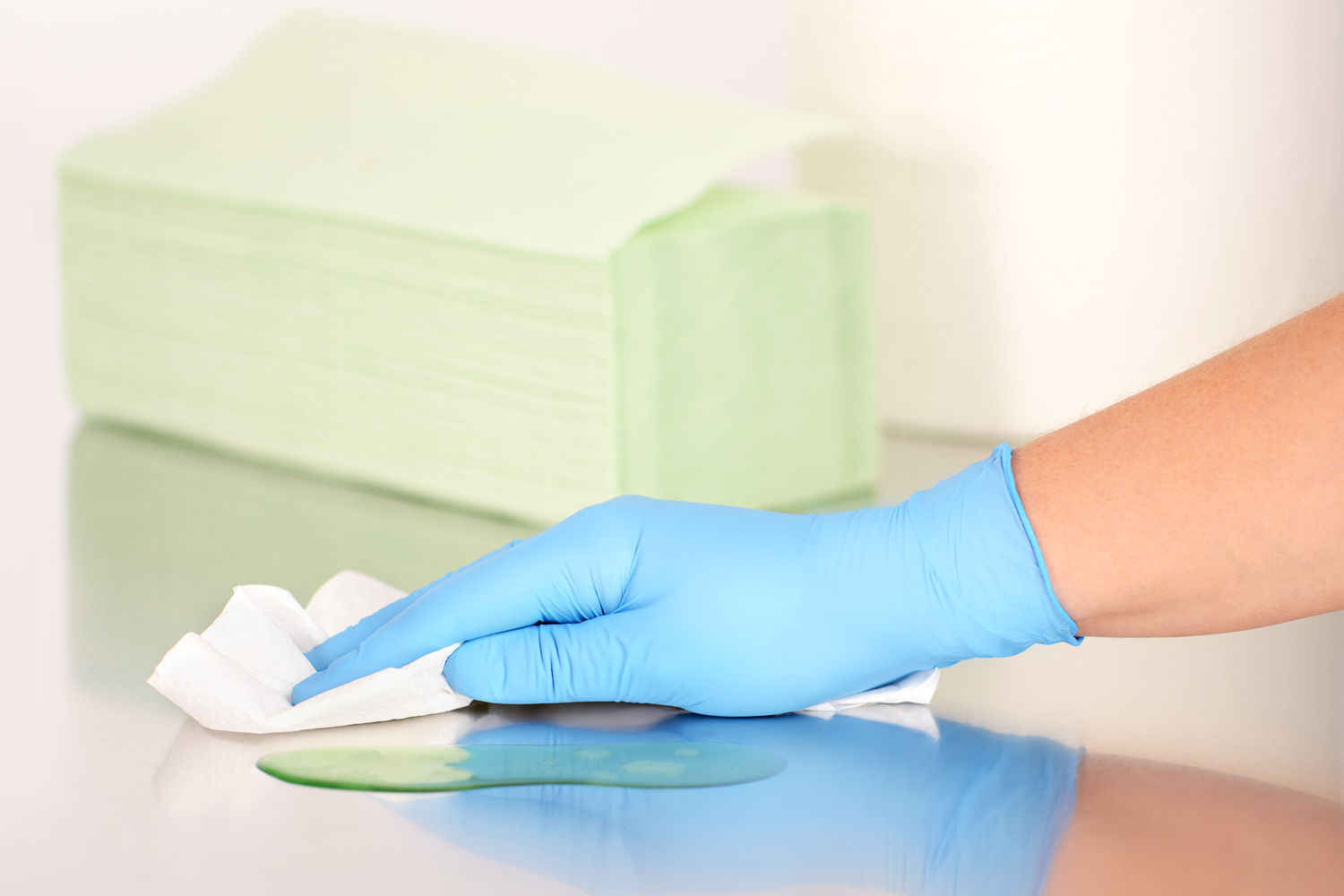 Damit das ganze Unternehmen wieder glänzt, machen Sie sich mit Putzmitteln und entsprechenden Tüchern an die Arbeit. Bei der Wahl des passenden Tuchs kommt es auf den Einsatzzweck an. Muss das Tuch viel Flüssigkeit aufnehmen, reinigen Sie die Flächen am besten mit einem mehrlagigen und saugstarken Papier mit Prägung. Für das Polieren und Pflegen von empfindlichen Oberflächen, etwa bei Maschinen, bieten sich Tücher aus Vlies an. Dieses Material eignet sich auch zur Reinigung mit Lösungsmitteln. Putzen Sie Glas, nehmen Sie am besten fusselarme Tücher.