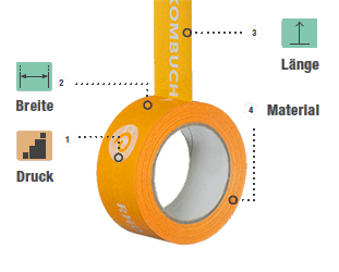 So einfach geht's: Material, Farbe und Rollenbreite des Klebebands auswählen, Anzahl der Druckfarben und gewünschte Menge festlegen. In unserem Online-Konfigurator können Sie anschließen Ihr Klebeband gestalten.