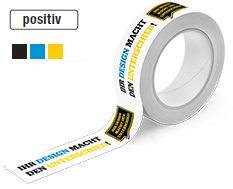 Auf Wunsch können die Kleberollen 1-4 farbig bedruckt werden – im positiv/negativ Druck – und bieten daher zahlreiche Möglichkeiten als Werbemittel oder Warnband.