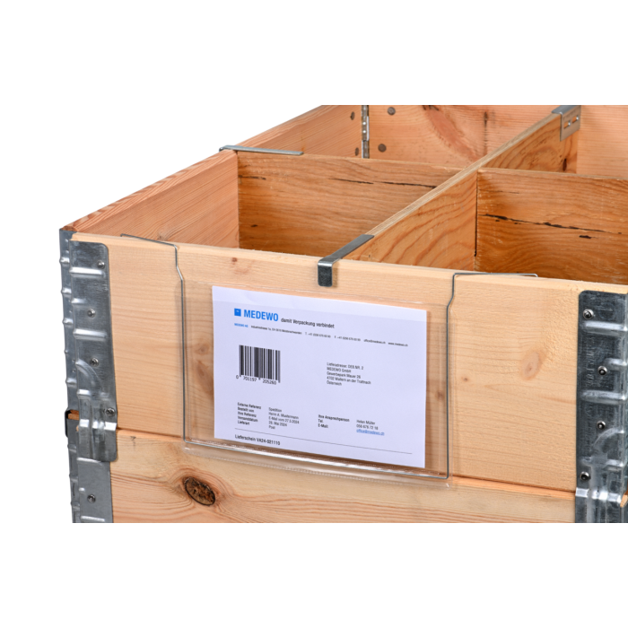 Die transparente Drahtbügeltasche für Aufsatzrahmen und Regale ist einfach anzubringen sowie wiederverwendbar. Während des Transports gewährleisten die PVC-Taschen eine sichere Aufbewahrung Ihrer Begleitpapiere. Auch ideal als Kennzeichnungstasche bei internen Umschlagplätzen einsetzbar.