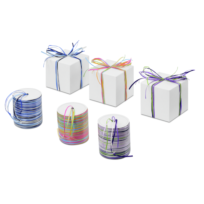 Die kreative Schleife für lebendige Farbkombinationen im Handumdrehen. Mit 5 verschiedenen Farben pro Rolle, die ganz einfach zusammen als Band gebunden werden.