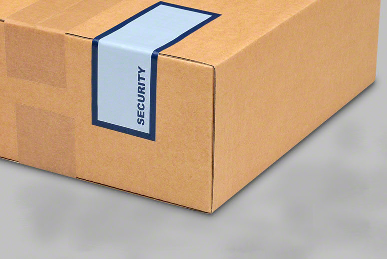 Das Sicherheits-Etikett zeigt mit der Aufschrift «SECURITY» sofort an, dass der Inhalt versiegelt ist und eine Manipulation angezeigt wird. Versucht man das Etikett dennoch vom Untergrund zu lösen, bleibt der Hinweis «OPENED» zurück.