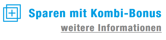 Ihre Sparmöglichkeiten erkennen Sie an diesem Kombi-Bonus-Icon. Das Icon finden Sie bei Produktgruppen, in denen der Bonus anwendbar ist, rechts über der Bestelltabelle. Sehen Sie das Icon an einer Tabelle, können alle Produkte darin miteinander kombiniert werden.