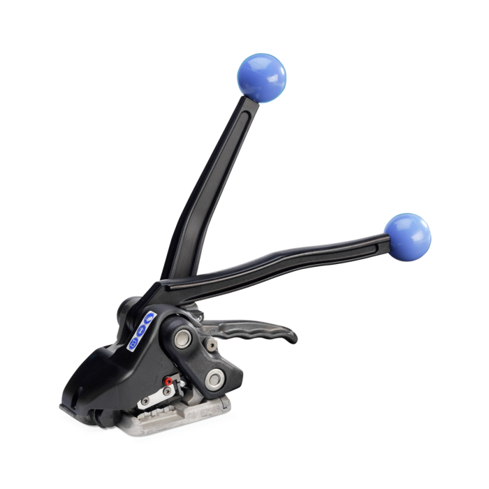 Mit dem Handgerät spannen und verschließen Sie Stahlbänder sicher und schnell ohne den Einsatz von Verschluss-Hülsen oder -Plomben. Das robuste und ergonomische Umreifungsgerät ist für den täglichen Einsatz in Industrie sowie Gewerbe bestens geeignet.