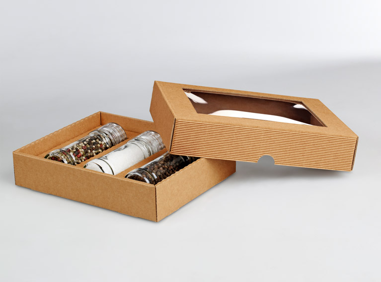 Der Stanzzuschnitt bewahrt das Gut sicher in der Verpackung, während das Sichtfenster am POS den Blick darauf freigibt und für eine optimale Produktpräsentation sorgt.