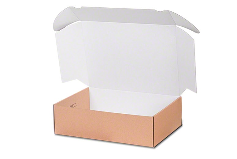 FEFCO 0421 Stanzverpackung, die mit Verbindungs- und Einstecklasche aufgebaut wird – kein zusätzlicher Verschluss nötig