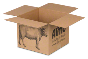 Das klassische Braun unterstreicht noch einmal die Nachhaltigkeit des Kartons. Individuell gestaltet mit Logo bleibt die Verpackung und das Unternehmen lange in Erinnerung.
