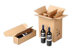 Mit zweiwelligem Innen- und Außenkarton transportiert der Flaschen-Versandkarton Gläser sicher. Die innenliegende Konstruktion fixiert und trennt die zerbrechlichen Gefäße voneinander.