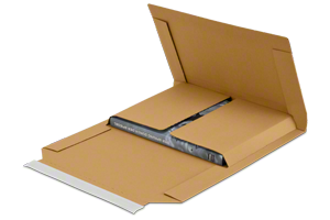 Für ein unempfindliches Buch, das Sie versenden möchten, bietet sich eine Medienverpackung aus einwelligem Testliner an. Dank der umlaufenden Stoßkanten ist das Packgut rundum geschützt.