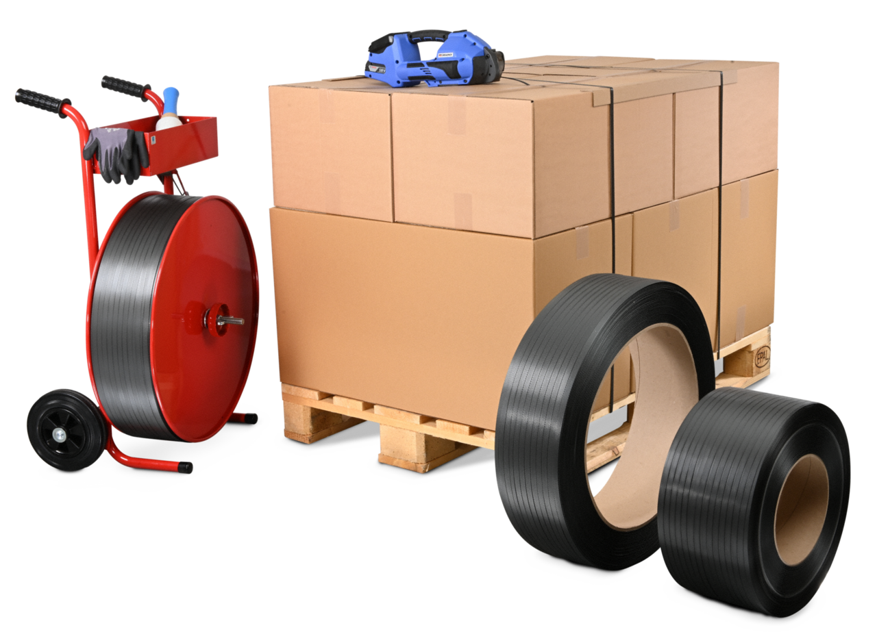 - Umreifen: Wenn Sie Ihre Schachteln umreifen, dient dies vor allem der Waren- und Ladungssicherung. So können Sie die Pakete auf dem Ladungsträger fixieren und schützen den Inhalt vor Manipulation und Diebstahl. Für den Versand einzelner, leichter Pakete eignen sich ausserdem PP-Umreifungsband oder für nachhaltiges Verpacken ein Umreifungsband aus Papier. Letzteres verschliesst Pakete absolut nachhaltig für beispielsweise die Lagerung in Innenräumen oder beim Versand und der Sicherung leichter Packstücke.