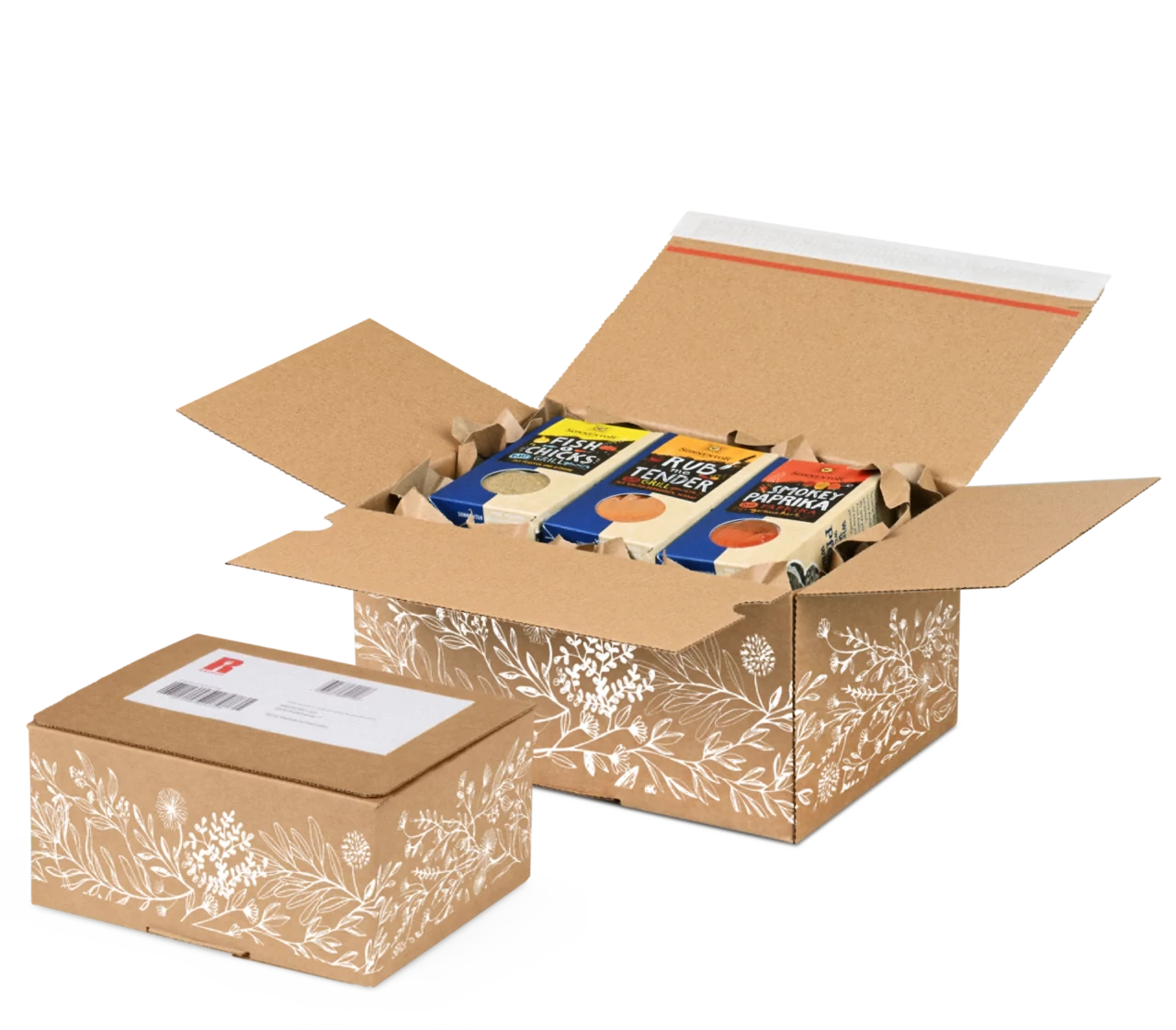 begeistert im besten Fall optisch schon vor dem Auspacken Neben der bereits zuvor angesprochenen optionalen Individualisierung Ihrer Sekundärverpackung, bieten sich dafür auch Standardkartons mit Motivdruck, wie die COMFORT-BOX mit Motiv an. Ein eleganter, dezenter Aufdruck von Blüten und Blättern gibt dem natürlichen Look des Kartons noch das gewisse Etwas. Das Öffnen gelingt schnell und einfach mit der integrierten Aufreisshilfe. Ebenfalls eine geeignete Lösung ist der quadratische Versandkarton mit floralem Design. Dieser lässt sich durch Stecklaschen schnell öffnen und wiederverschliessen.