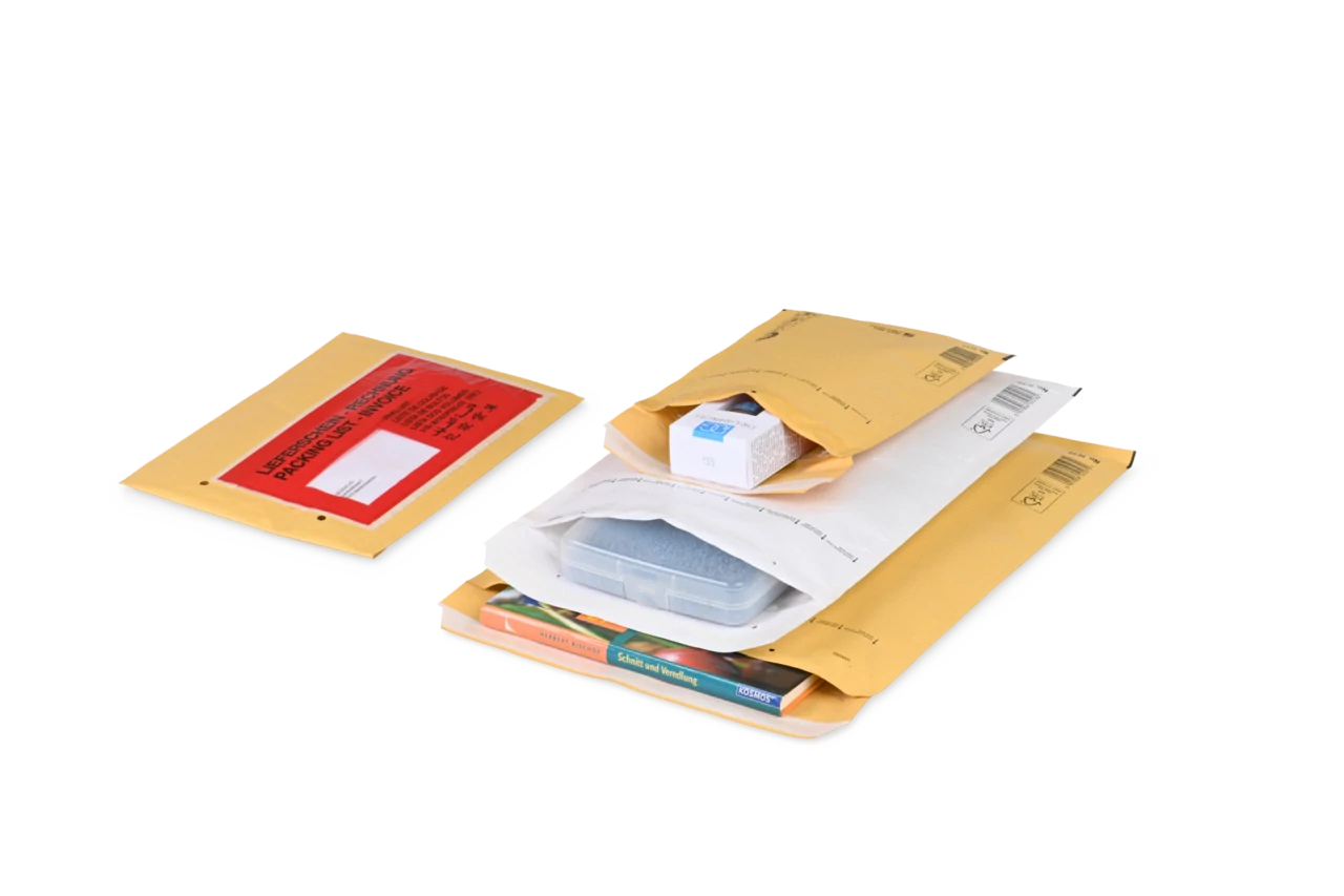 Verfügt Ihre Versandtasche oder Schachtel bereits über eine Polsterung aus beispielsweise Schaum, mit Papier- oder Luftpolster, sparen Sie beim Verpacken von entsprechend schützenswerten Produkten ebenfalls Material ein.