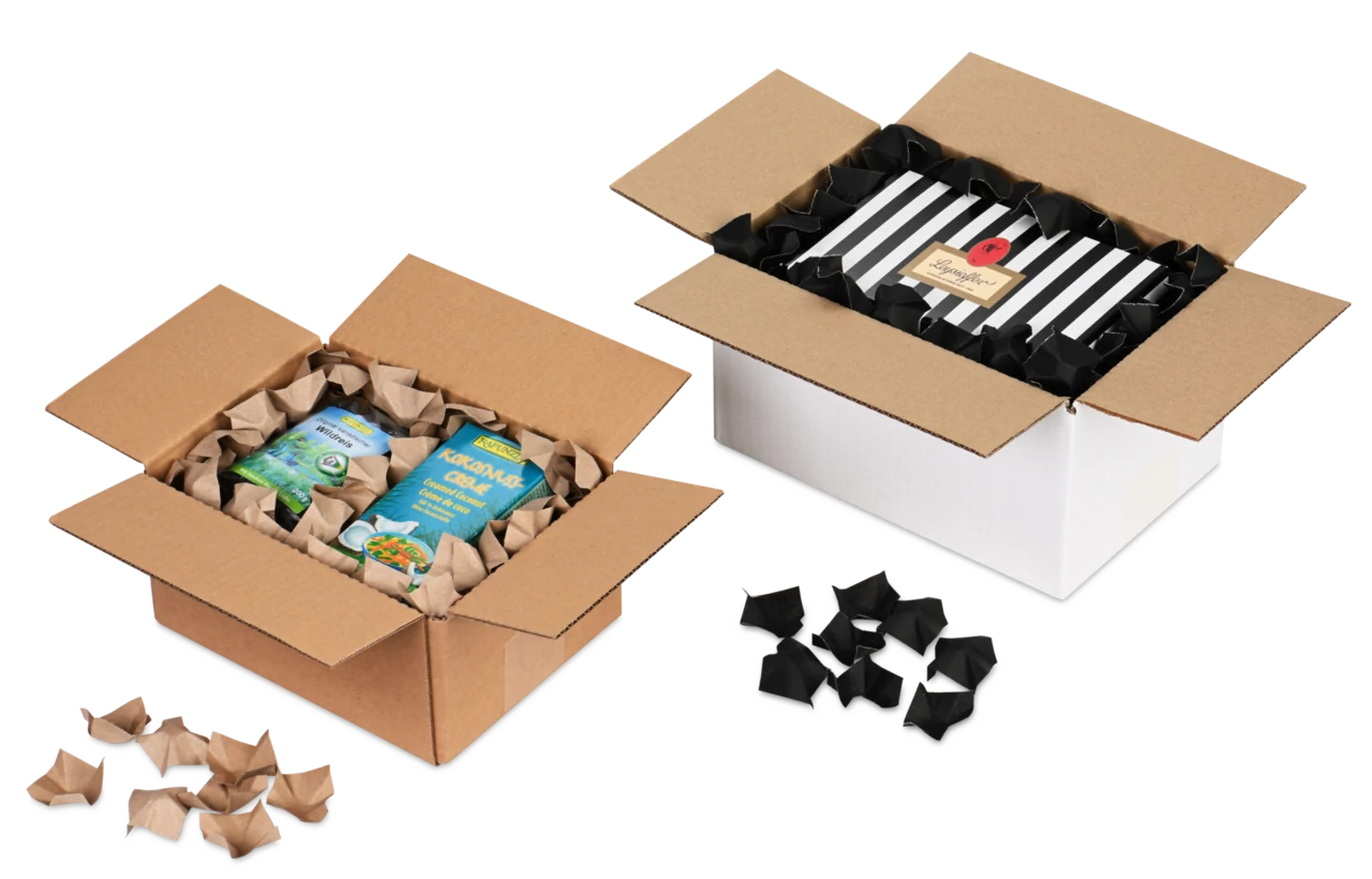 Beim Füllmaterial können Sie zu recyclingfähigen Artikeln wie Stopfpapier greifen oder Ihr Paket mit Bio-Verpackungsflocken füllen. Zusätzlich lassen sich die Kartons mit einem Klebeband auf Papierbasis oder ebenfalls nachhaltige Lösungen aus Rezyklat, wie das Selbstklebeband aus Recyclingmaterial, verschliessen. Ist eine Polsterung notwendig, können Sie auf Luftpolster und -folien verschiedener Art zurückgreifen. Dabei gibt es auch Alternativen, um die Umwelt zu schonen, wie beispielsweise Luftpolsterfolien aus Recyclingmaterial oder aber auch gebrauchsfertige, nachhaltige Papierpolsterkissen, die Sie als Füllmaterial einsetzen können.