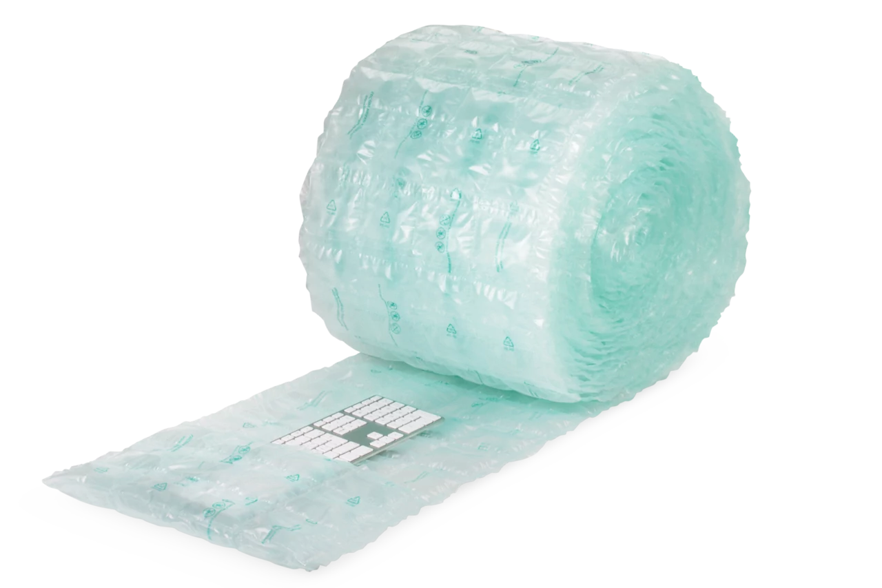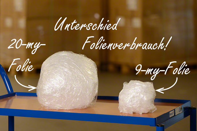 Wenn Ihre Ware doch noch herumrutschen sollte, bieten sich ressourcenschonende Füll-Alternativen wie Luftpolsterkissen in Rollen aus Recyclingmaterial an. Eine sinnvolle Massnahme sind ausserdem Papier-Luftkissen. Mit einem entsprechenden Gerät fertigen Sie diese selbst an und zwar nur dann, wenn Sie Füllmaterial wirklich benötigen. Damit sparen Sie bestmöglich Material ein, da Sie zu 99% Luft versenden. - Nicht nur bei Postversand, sondern auch beim Transport mit Spedition gibt es Möglichkeiten Ressourcen einzusparen, wie z. B. bei der Palettensicherung. Dies erreichen Sie mit Stretchfolien, wie der MECASTRETCH® ECO Handrolle. Dieser neuartige Artikel weist eine Folienstärke von nur 9 my auf. Dank der hochwertigen Verarbeitung der Folie können Sie jedoch die gleiche Paletten-Stabilität wie bei einer 20-my-Standard-Folie erreichen.