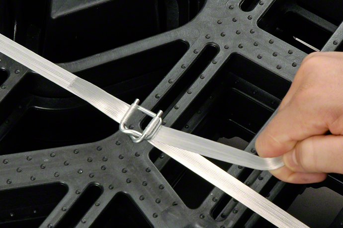 Umreifen Sie leichtere Palettenware oder lagern umreifte Ware nur kurzfristig, ist PP die richtige Wahl. Auch beim Umreifen von einzelnen Paketen mit einem Tisch-Umreifungsgerät kommt es zum Einsatz. PP ist flexibel sowie leicht dehnfähig und wird daher auch bei Materialien verwendet, bei denen sich das Paketvolumen noch ändern kann. Gerade beim Verschluss ist es sehr vielfältig, da es sowohl mit Hilfe eines Geräts geschweißt als auch manuell verschlossen werden kann. Im letzteren Fall greifen Sie auf Metall-Hülsen und eine Zange zurück oder auf Kunststoff-Schnallen, für die es keine zusätzlichen Hilfsmittel benötigt.