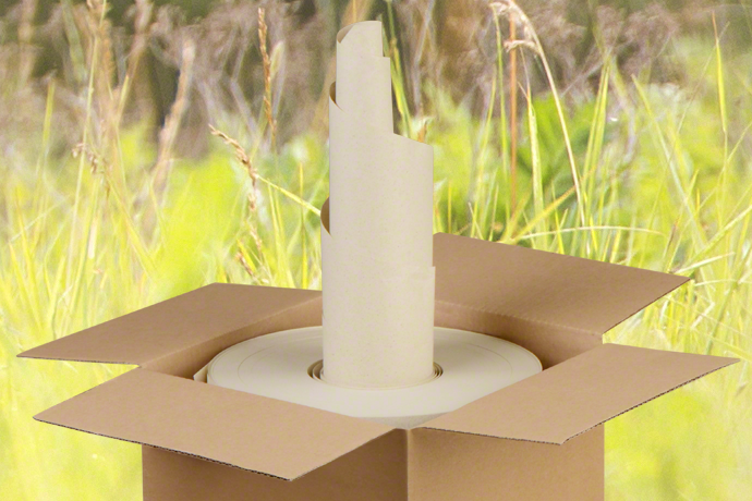 - bis zu 50 % Grasfasern, gemischt mit recycelten Papierfasern