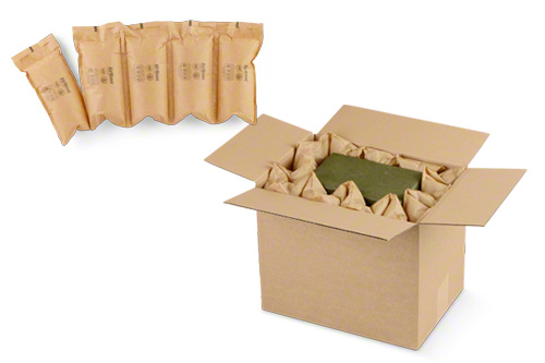 Les coussins d’air servent de matériau de remplissage : rien ne bouge pendant le transport et aucun dommage ne survient. Il suffit de combler l’espace vide du colis. Le produit peut toucher la paroi du carton ; pas besoin d’emballer sur tous les côtés. Choisissez de préférence un format plus petit et compact.
