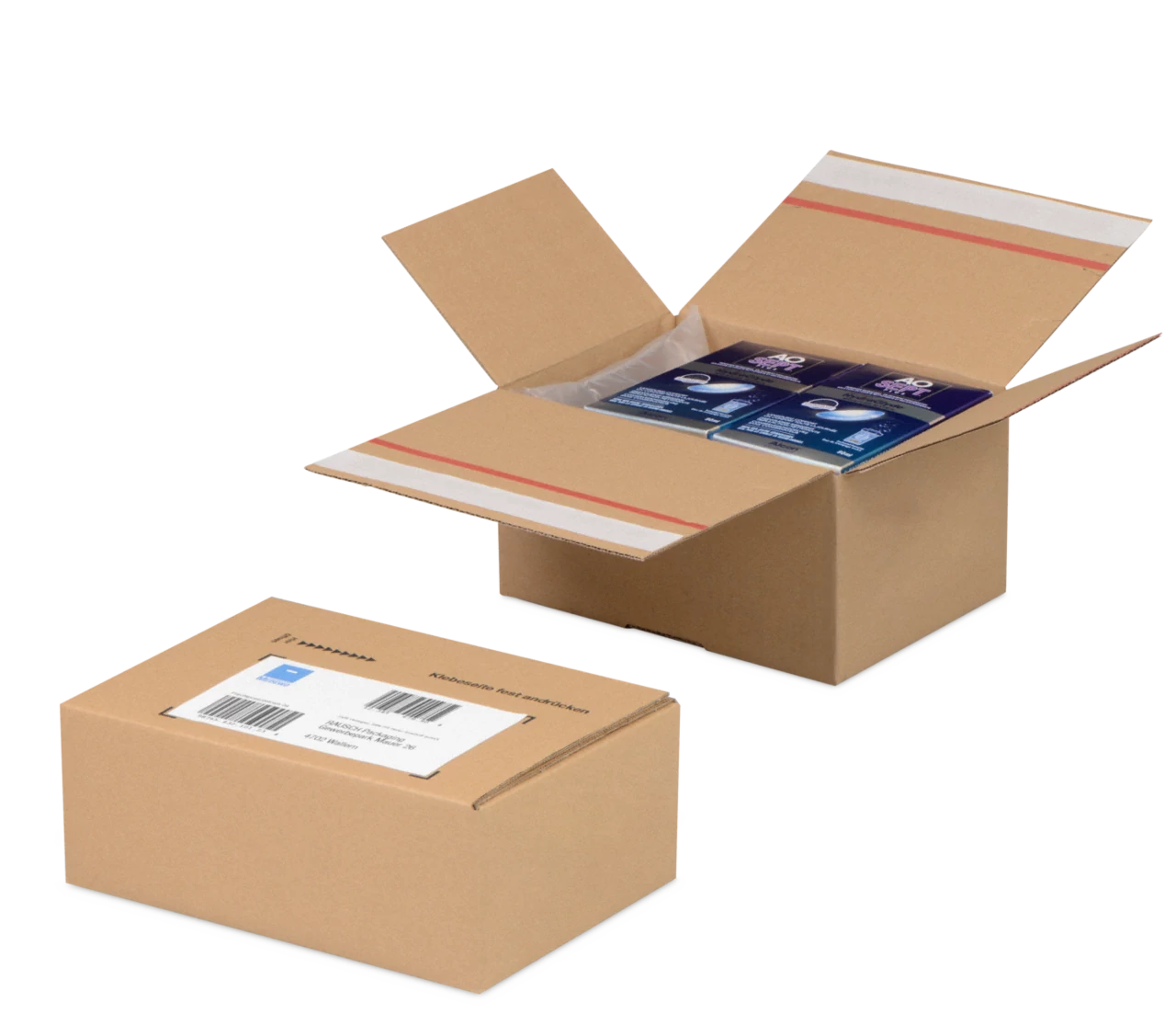 Boîtes pliantes avec languettes d’insertion sont particulièrement confortables. Cette solution est particulièrement adaptée à l’envoi de chaussures, de matériel de bureau, de textiles volumineux ou lourds et de produits électroniques grand public. Ce faisant, les rabats latéraux empêchent toute intervention non autorisée. En outre, les parois latérales sont composées de plusieurs couches et sont donc très stables.