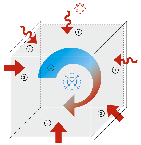 Que le produit doive être maintenu au chaud ou au froid: un tel emballage minimise l’échange d’énergie thermique intérieur avec l’environnement extérieur, afin que la température à l’intérieur de l’emballage puisse être maintenue le plus longtemps possible. En effet, s’il existe deux plages de température différentes, par exemple si l’intérieur de l’emballage est plus froid que son environnement, les températures s’ajustent suivant les règles de la physique. Un emballage isotherme optimal minimise cet échange d’énergie thermique. Trois facteurs y jouent un rôle important: