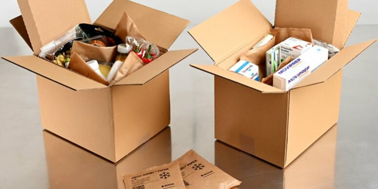 Le produit est disponible sous forme de caisses isothermes ainsi que de sachets isothermes. Les caisses isothermes se composent chacune de 3 éléments: un carton d’expédition et deux inserts. Les kits sont livrés à plat et sont assemblés rapidement. Les caisses offrent ainsi une protection complète et peuvent même être utilisées plusieurs fois. Avec un non-tissé extrêmement flexible, la Thermo-Box ECO en cellulose offre une protection supplémentaire contre les chocs. Dans les deux versions, l’emballage extérieur peut être imprimé individuellement avec votre logo, ainsi votre marque est visible lors de l’expédition et auprès du destinataire.