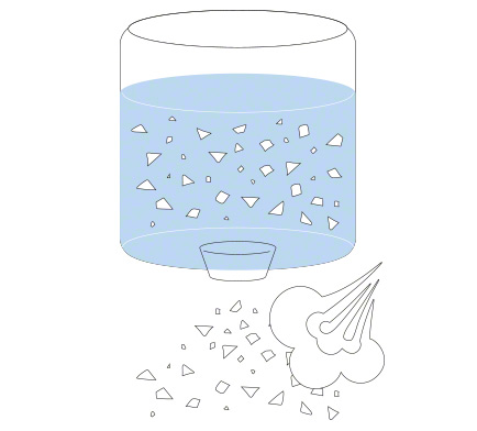 Les flocons propres et secs sont transformés en granulés (produit recyclé). Le matériau informe et de taille variable est transformé en granulés uniformes par fusion et refroidissement à l’aide d’une extrudeuse.