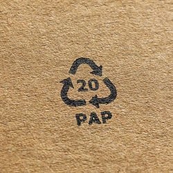 Pour le papier ou les cartons, prêtez attention aux termes Schrenz ou Testliner, en plus de la désignation papier recyclé (par exemple pour le papier à rembourrer ou la soie d’emballage). Des fibres recyclées de toutes sortes sont utilisées dans Schrenz, des fibres recyclées de haute qualité sont utilisées dans Testliner. Si le type de papier est indiqué comme rebut d’impression, il s’agit de papiers journal recyclés ou de déchets d’impression, qui sont également de haute qualité.