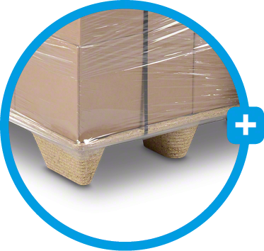 L’utilisation d’un film étirable constitue une autre forme courante de protection et de stabilisation supplémentaire de la marchandise sur la palette. Le film plastique étirable s’adapte étroitement aux paquets et les protège ainsi contre le glissement, l’humidité et la saleté. Pour une protection supplémentaire de la charge palettisée par le haut, il est possible d’utiliser un film de couverture de palette.