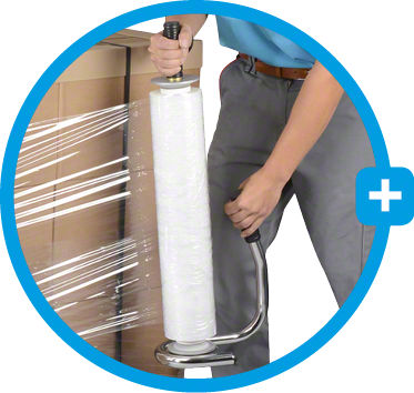 Le film étirable est disponible en version manuelle ou mécanique. Le thème de l’économie de matériaux et de l’utilisation de matériaux recyclés y est particulièrement mis en valeur.