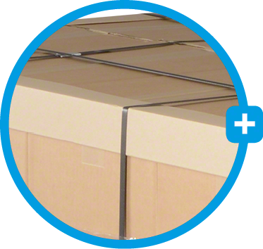 Pour prévenir ces risques, une cornière de protection protège les coins et les arêtes. De plus, de cette manière, le feuillard de cerclage n’abîme pas le produit emballé et lui confère un soutien supplémentaire. Grâce à un effet de force réparti, les marchandises peuvent être cerclées avec des forces plus élevées et donc de manière encore plus sûre.