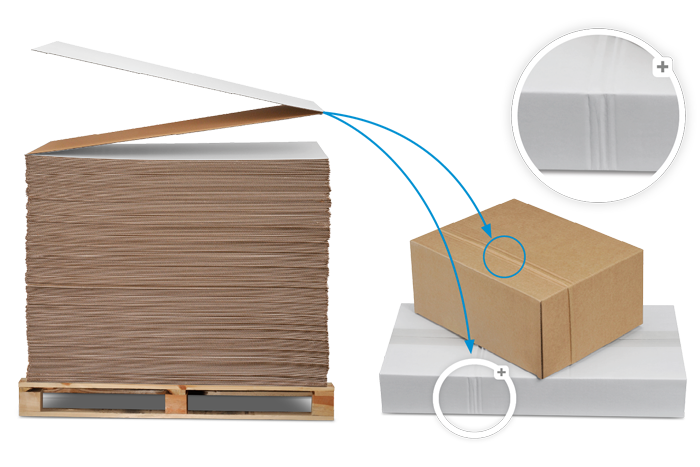 Hinweis: Um eine schnelle Produktion garantieren zu können, verwenden wir speziell gefaltete Wellpappe. Der Falz der Endlos-Wellpappe kann im Endprodukt sichtbar sein.