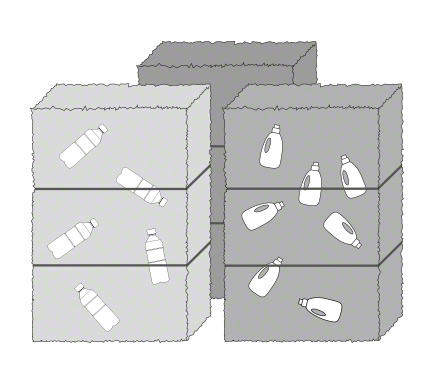 Die sortierten Kunststoffe werden zu Ballen gepresst, um sie zur Weiterverarbeitung zu transportieren. Diese Sortenreinheit bewirkt, dass die verschiedenen Kunststoffarten, die sich aufgrund ihrer unterschiedlichen Polymere nicht gleich verhalten, später bestmöglich verarbeitet werden können.
