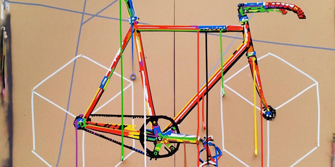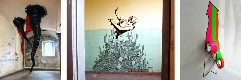 Was simpel klingen mag, stellt die Künstler vor ganz eigene Herausforderungen. So sind sie beschränkt, was das Material in Farben und Maßen betrifft. Einzig mit Sicherheitsmessern oder Skalpellen bearbeiten sie das Band. Umso faszinierender ist die Vielfalt an Kunstwerken, die dabei entsteht: ob auf Holz, Glas oder Metall, auf einer Leinwand, einer Fassade oder einem Möbelstück. Die Werke spielen mit geometrischen Formen, Räumen und Medien.