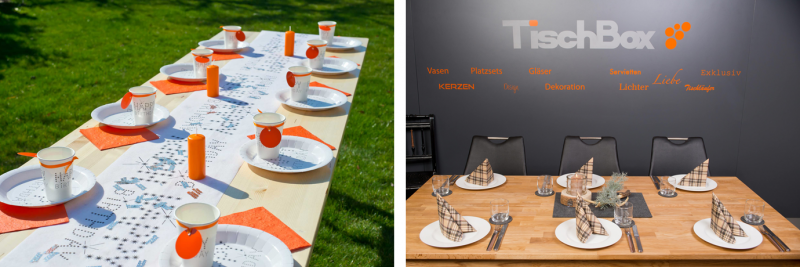 Ob für die Hochzeit, Taufe oder den 60. Geburtstag: Eine stimmige Dekoration der Festtafel rundet die Feier erst richtig ab. Bis alle Elemente in der richtigen Farbe und Qualität gefunden sind, kostet dies aber viel Zeit (und Nerven). Das haben sich auch die Gründer von TischBox gedacht – und verschaffen Abhilfe: In ihren TischBoxen ist die gesamte Deko für eine Tafel oder ein Fest enthalten und dies von der Serviette, über die Vase bis zur Kerze. Alle Elemente sind aufeinander abgestimmt und passend zu den verschiedenen Anlässen oder in einem bestimmten Stil zusammengestellt. Zusätzlich können die Kunden aber auch einzelne Produkte erwerben: vom einfachen Pappteller für das Picknick am See bis zur hochwertigen Vase, die nach der Feier noch weiter als Deko im Wohnzimmer stehen bleibt. Über 500 Produkte stehen den Kunden im Web zur Auswahl.