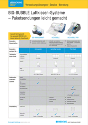 Bei einem Luftkissen-System stellen Sie mit einem Gerät und passender Folie selbst Luftkissen her. Solche Kissen dienen je nach Folientyp zur Hohlraumfüllung (Luftkissen-Ketten) oder Polsterung (Luftkissen-Matten) Ihrer Ware im Paket. Da sie aufgeblasen zu 99 % aus Luft und nur 1 % aus Material bestehen, sind sie sehr leicht, benötigen weniger Rohstoffe und sparen zugleich Versandkosten. Nach ihrem Einsatz lassen sich die Kissen zudem wiederverwenden oder durch Aufstechen platzsparend dem Recycling zuführen. Die Mehrzahl der Folien werden klimaneutral produziert und sind, je nach Material, recyclingfähig oder sogar heimkompostierbar.