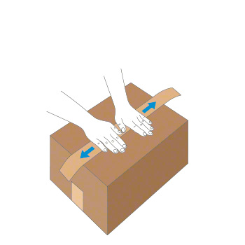 Doch wie wird Nassklebeband konkret in der Praxis verwendet? Wir zeigen Ihnen, wie Sie beim klassischen 2-Streifenverschluss Deckel und Boden verschließen. Dafür bringen Sie das Band – je nach Format des Kartons – in diesen 3 Schritten an: