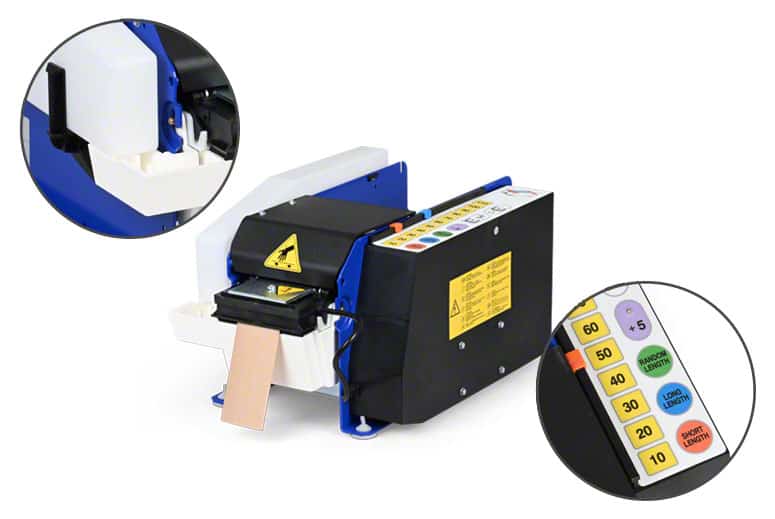 - vollautomatisch – Abmessen, Befeuchten und Abschneiden übernimmt das Gerät