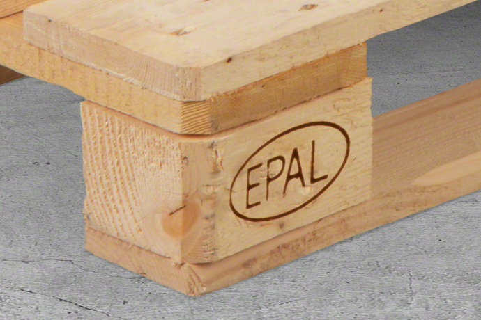 Aber was genau macht eine Holzpalette zu einer Europalette? Das offensichtliste Kennzeichen ist die Größe von 1.200 x 800 mm, was einer Grundfläche von 0,96 m² entspricht – aber die haben auch andere Palettenarten. Deswegen gibt es noch einige weitere Merkmale, an denen Sie eine Europalette erkennen bzw. die sie erfüllen muss.