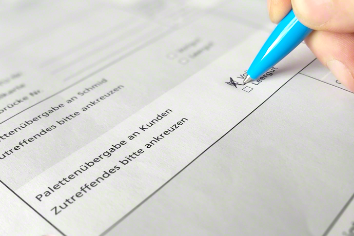 Wichtig bei dem sogenannten «Zug-um-Zug-Tausch» ist es, die gleiche Qualität an Paletten zu tauschen und beispielsweise nicht für gebrauchte Paletten neuwertige herauszugeben. Sind Bretter beschädigt oder fehlen sogar und weist die Plattform nicht mehr alle Markierungen auf, sollte die Palette nicht angenommen werden. Zudem muss bereits bei der Auftragsvergabe die Anzahl der Ladungsmittel notiert und auf den Frachtpapieren vermerkt sein. Der Frachtführer quittiert nach dem Tausch diesen zudem noch.