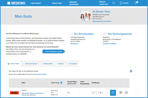 Besonders praktisch für Sie ist unser optimiertes Benutzerkonto, das Ihnen fortan viele neue Funktionen und Möglichkeiten bietet. Nach Ihrer Registrierung können Sie dort Ihre Bestellungen der letzten zwei Jahre einsehen und diese mit nur einem Klick wieder einkaufen, sich einen Überblick über gelieferte Muster verschaffen oder sich über Ihre aktuellen Angebote informieren. Ganz leicht passen Sie in Ihrem Benutzerkonto zudem Ihre Adressen für Rechnungen und Lieferungen an oder abonnieren unseren Newsletter. Ein weiterer Vorteil für registrierte Benutzer: Sie können interessante Produkte auf eine Merkliste mit Kommentarfunktion setzen und Ihre Daten sind bei einer Bestellung schon vorausgefüllt, so dass Sie nichts mehr eintragen müssen und dadurch Zeit sparen.