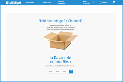 Wenn Sie noch nicht im Detail wissen, welche Verpackung Sie benötigen, können Sie in unseren Themenshops und Kategorien in Ruhe «stöbern» und das umfassende Produktsortiment von MEDEWO erkunden. Unsere Kategorien haben wir für den neuen Shop überarbeitet und übersichtlicher gestaltet. Ganz neu finden Sie in der Navigation den Bereich Themen-Shops. Hier haben wir nach Themen bzw. Anwendungen Produkte für Sie vorausgewählt, die sich speziell für diesen Einsatz eignen. Beispielsweise sehen Sie übersichtlich, welche MEDEWO-Verpackungen besonders nachhaltig sind, welche Versandverpackungen speziell für den Online-Handel geeignet sind oder auch welches Material Ihnen ESD-Schutz bietet.