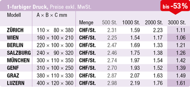• schon ab 500 St. – 12 Grössen zur Wahl