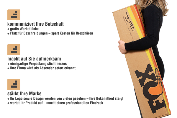 • bedruckte Schachteln fallen auf – Ihre Firma wird als Absender sofort erkannt
