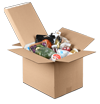 Hanf, EPS / EPP, Thermo-Luftpolsterfolie, Mehrschichtige Folie und Zellstoff.