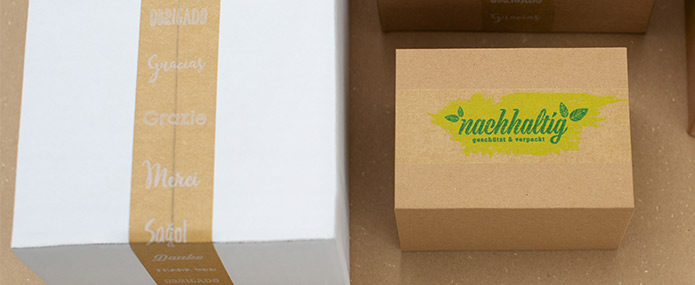 Des rubans adhésifs imprimés individuellement mettent votre expédition en valeur et donnent une impression professionnelle au destinataire. Votre carton ou votre sachet – imprimé avec votre logo – attirera également le regard et deviendra un support publicitaire.