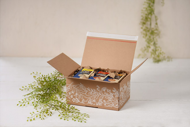 La possibilité d’impression personnalisée fait du carton à fond automatique une solution d’emballage personnalisée qui offre au client une expérience particulière lors du déballage de sa commande.