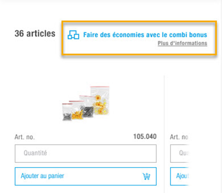 Cliquez ici pour un exemple de produit pour lequel le combi bonus peut être utilisé.