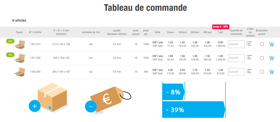 Dans notre webshop, le «prix flash» rouge vous indique dans le tableau des prix où et dans quel pourcentage vous économisez.