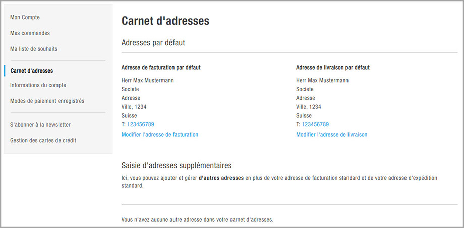 Dans la zone «Carnet d'adresses», vos adresses sont listées et vous avez la possibilité de les adapter en cliquant sur «Modifier l'adresse».