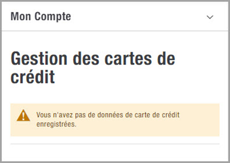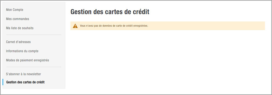 Ici, vous pouvez gérer les données de votre carte de crédit, que vous pouvez enregistrer lors du processus de commande.